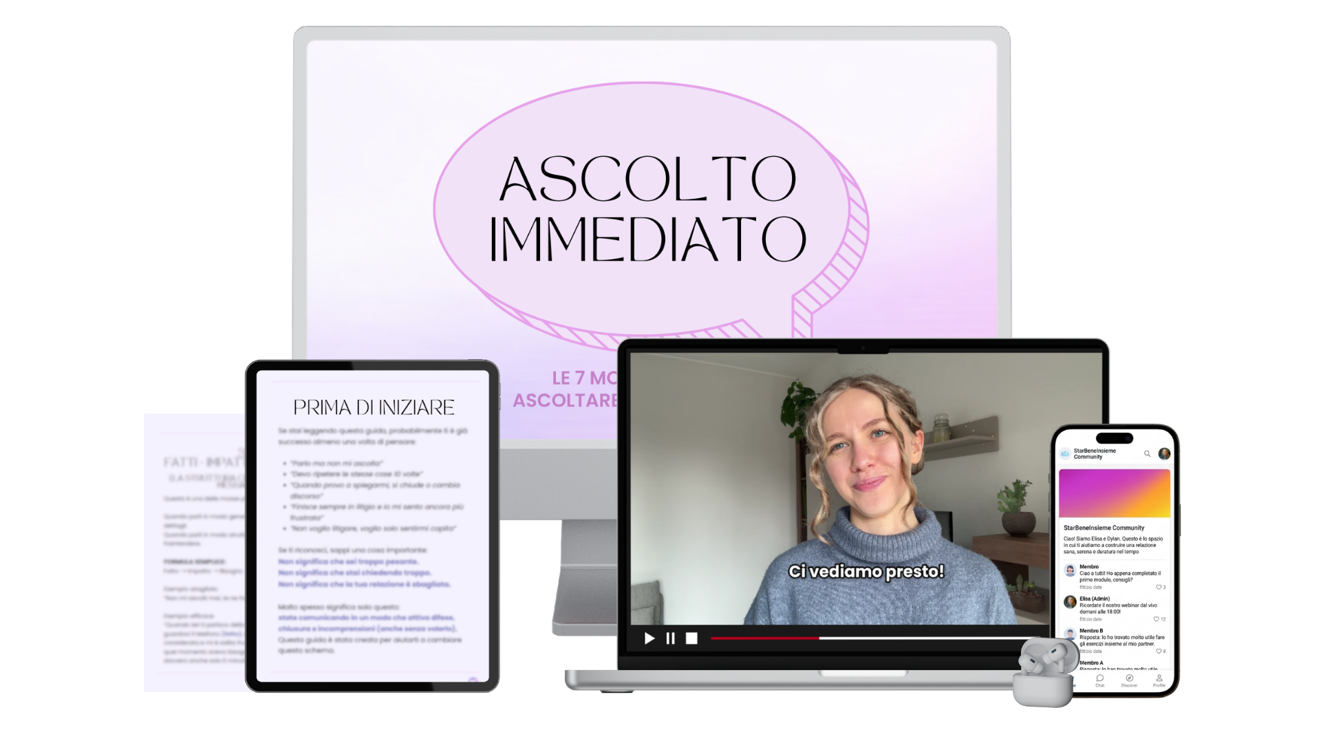 ASCOLTO IMMEDIATO non è teoria, è un metodo pratico con frasi ed esempi concreti. Se altri approcci non hanno funzionato, probabilmente mancava proprio questo: sapere esattamente cosa dire, come e quando.